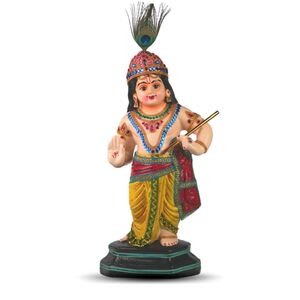 Beautiful idol of Sree Krishna made in fibre with complete ornaments, Strong, sturdy build, lightweighted and easily portable. Best for placing in Pooja Mandirs, Living Room or as Interior Decoration Showpiece, Table Décor Items or Showcase Decoration, Kindly note that the colours of ornaments might vary as each idol is handcrafted.